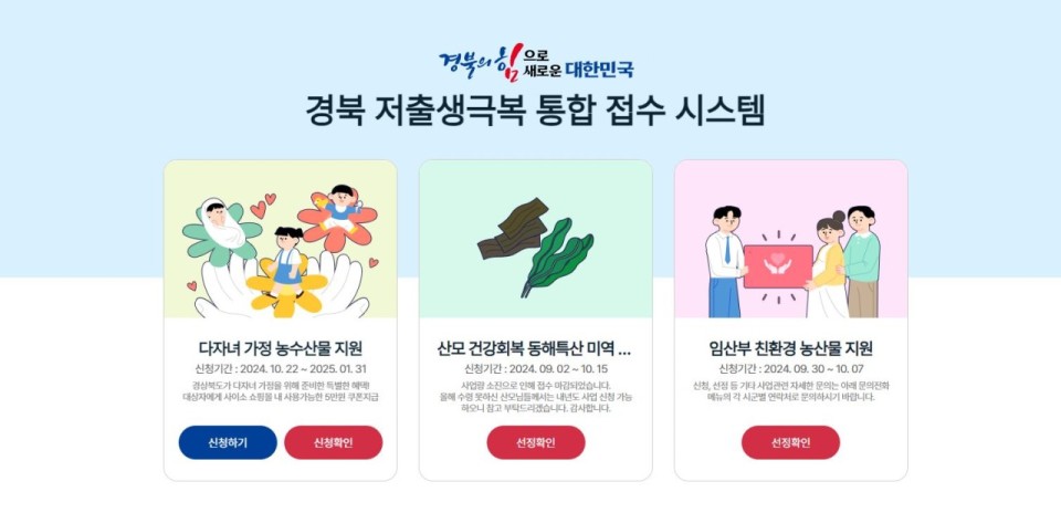 - 신청은 경북 저출생 극복 통합 접수 시스템 에서 진행됩니다.