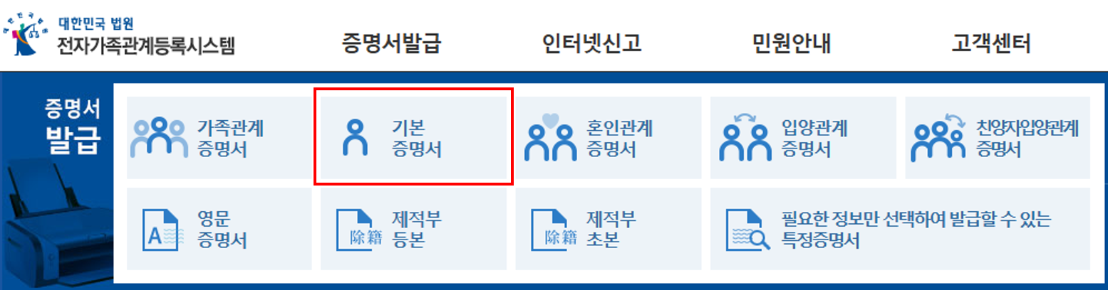 기본증명서 인터넷 발급_대한민국 법원 전자가족관계등록시스템
