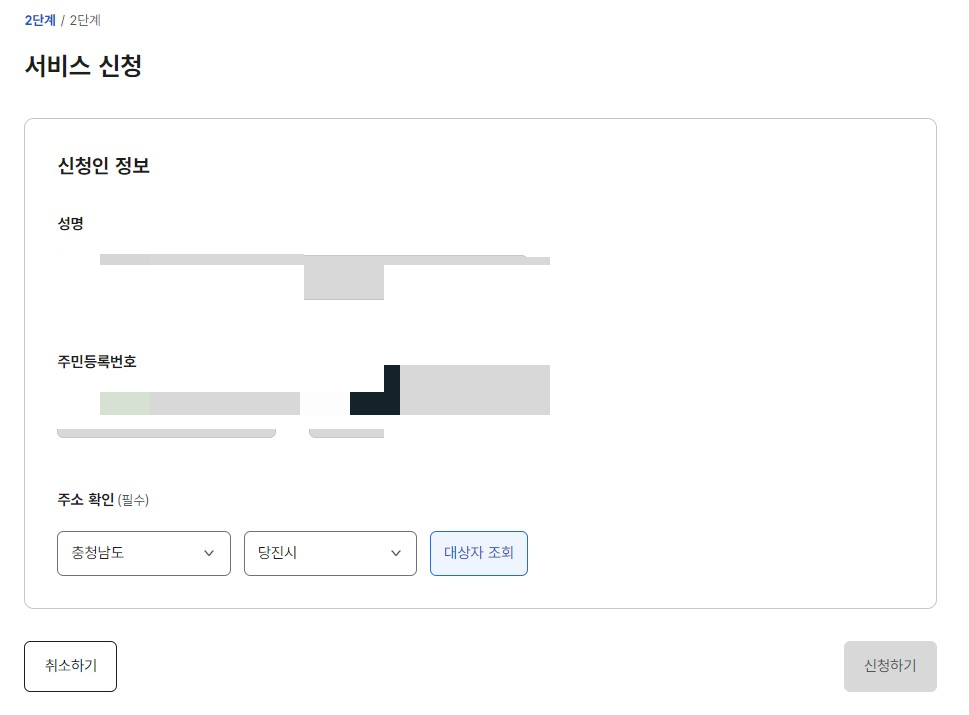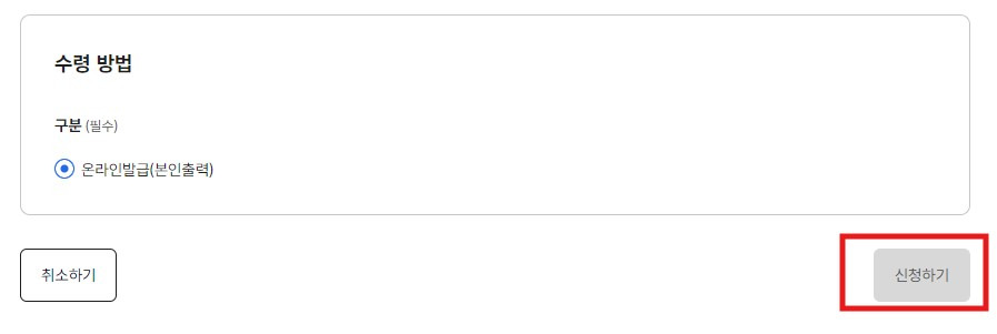 본인 신청만 가능: 대리인 신청은 불가능합니다.