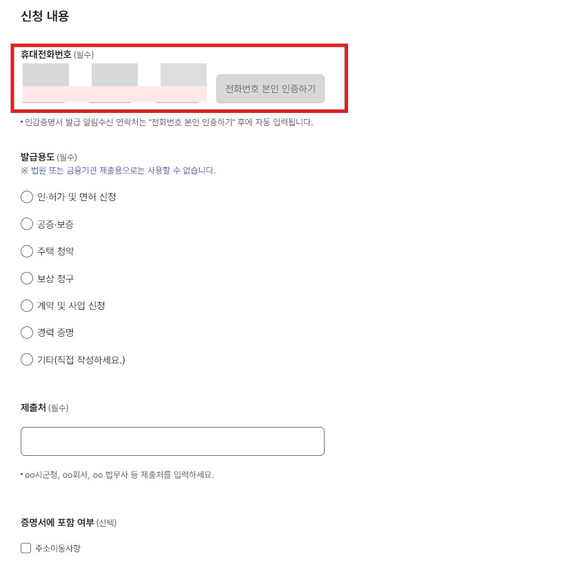 - 비회원 발급 가능: 인감증명서는 비회원도 발급할 수 있습니다.