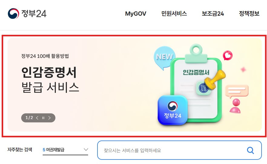 - 검색: 검색창에 '인감증명서'를 입력합니다.