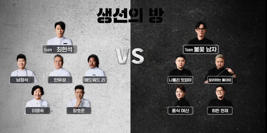 6회부터는 3라운드 팀 대결이 본격적으로 시작되었습니다. 각 팀은 흑백 팀전으로 고기팀, 생선팀 각 팀이 2개조로 나눠 흑백 대전을 겨루는 미션이였는데요. 8시간 동안 8코스 요리 를 완성하는 팀 미션이 주어졌고, 이는 단순한 요리 실력 이상으로 팀워크와 시간 관리가 중요하게 작용하는 도전 과제였습니다.
